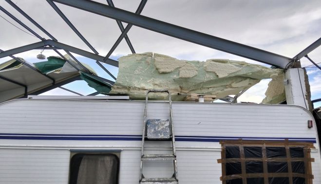El accidente ocurrió cuando la estructura de una terraza se desprendió durante el tornado que provocó daños significativos en diversas zonas del municipio olontense. El hombre sufrió un traumatismo craneoencefálico y requirió asistencia inmediata.