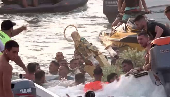 El incidente generó momentos de incertidumbre mientras se trabajaba para llevar a hombros a la Virgen hasta la orilla, y acabó hundiéndose parcialmente la imagen, ante la presencia de muchos devotos.