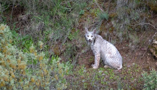 Fue una imagen que dio la vuelta al país en octubre del año pasado. Ahora, el fotoperiodista jiennense Ángel Hidalgo ha logrado repetirla. El misterioso lince ibérico blanco ha reaparecido tras el invierno. Su localización provocó un debate que llevó a los expertos a aclarar que no era albino ni leucístico. De hecho, la Junta aseguró que ya conocía su existencia y que se estaba estudiando el motivo del cambio de pigmentación.