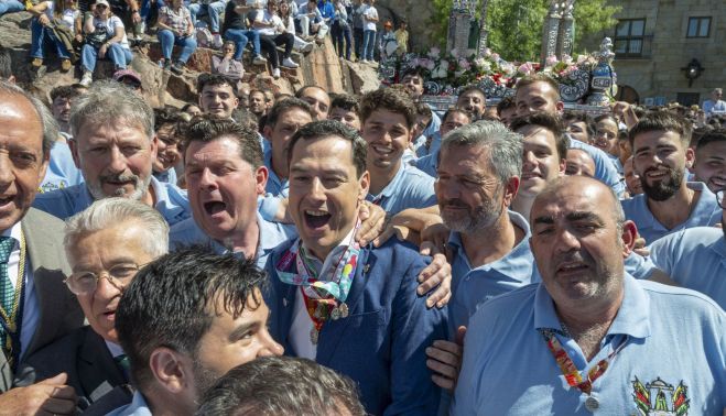 Juanma Moreno, presidente de la Junta de Andalucía y candidato a la reelección por el PP, ha portado este domingo a la Virgen de la Cabeza durante la celebración de la romería en Andújar. "¡Impresionante! Ha sido todo un honor acudir a la llamada de los anderos para portar a la Reina de Sierra Morena, una experiencia inolvidable. Emociona la devoción popular, el afecto y el fervor de miles y miles de personas. Viva la Virgen de la Cabeza".
