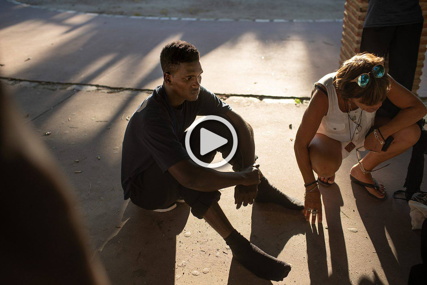 El joven guineano cuenta que abandonó Conakri porque cuando su madre falleció, su padre, de otra etnia distinta, le obligó a casarse con una mujer de una etnia a la que él no pertenece. "Llegó a amenazarme de muerte si no lo hacía", destaca. Fue por ello que huyó de África atravesando Mali, Argelia y Marruecos, hasta llegar a España. Bah dice que no tiene familiares en Europa ni en ningún otro país. Confiesa que desea quedarse en Jerez, mientras que la Cruz Roja le fuerza a escoger un destino (Madrid, Bilbao, Barcelona...), "que elijamos un sitio porque el polideportivo va a cerrar y nos vamos a quedar en la calle", traduce Marianne, una belga de 62 años de edad, que reside en Jerez desde hace dos, y que es conocida entre los inmigrantes como "la mama" o "la yaya".