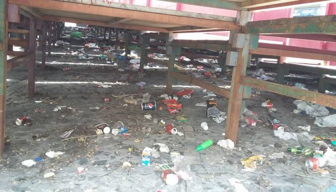 Lo cierto es que a estas cantidades habrá que añadir la basura que el desmontaje de los palcos está dejando al descubierto, lo que deja bien a las claras que no solo los espectadores de a pie de calle, sino los también considerados nobles, estos son, los usuarios de los palcos, son también propensos a arrojar basura al suelo. Esta imagen, en los situados en la calle José Luis Díez, es buena muestra de ello.