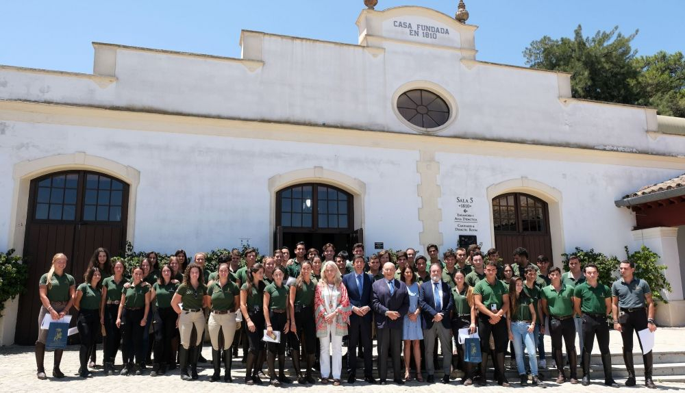 En total, tanto la Real Escuela de Jerez como el Campus de Torreluna en Carmona (Sevilla) han acogido este curso a 42 alumnos de equitación, seis de enganches, cuatro de auxiliar de clínica equina, siete de mozo de cuadradas, tres de guarnicionería y cinco de auxiliar de equitación y cría. Un total de 25 docentes se han encargado de una formación que combina los conocimientos téoricos con las enseñanzas prácticas para preparar a los futuros profesionales del sector ecuestre.