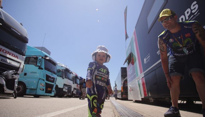 Ángel, Judith y el hijo de ambos, Ian, disfrutan de las carreras sentados encima de una toalla, cerca de la curva Michelín. Tienen todo lo necesario para sobrevivir a una jornada de Gran Premio: una sombrilla para evitar el sol, una nevera cargada de comida y bebida y ganas de pasarlo bien. El pequeño, de unos seis años, lleva rasurado en la cabeza el número 93 de Marc Márquez, además de una camiseta con su nombre, por lo que no hace falta preguntarle cual es su piloto favorito. La familia viene desde Santander, por lo que para recorrer los casi 1.000 kilómetros que separan su casa del trazado jerezano, salieron en coche el jueves, hicieron noche en Salamanca con unos familiares y llegaron el viernes a Chiclana, donde se hospedan. Desde allí, alejados del ruido y buscando tranquilidad, sobre todo para el pequeño, parten a las siete de la mañana para estar, sobre las diez, sentados en el Circuito. "Es el mejor ambiente, sin duda", comenta Ángel, quien alaba el carácter de los andaluces, porque "en otros sitios son muy estirados", señala. Al acabar el Gran Premio, vuelven a Chiclana para hacer noche y emprender el lunes la vuelta a casa. Buen viaje.