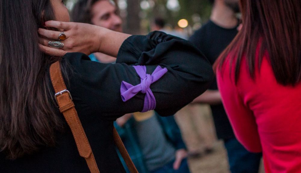 Son casi las nueve de la noche. Me dirijo al parque donde todos los jóvenes beben fino con 7 Up, ese que ya no es La Rosaleda y que tan solo tiene una entrada al Real de la Feria. Llevo una blusa negra, unos vaqueros y unas zapatillas blancas. En el bolso: el móvil, pañuelos de papel, varios pintalabios, las llaves del coche, un monedero con forma de manzana donde solo llevo unas monedas y el carné de conducir, y un brazalete morado que conseguí el primer día de Feria en la caseta La Morá, de Podemos. Parece que es temprano para empezar con el 'lote' y encuentro fácilmente a mis amigos. Y después de saludarlos, le digo a una del grupo que me coloque el lazo en el brazo. "¿Esto para qué es?", me pregunta. "Sororidad", es la primera palabra que me sale.