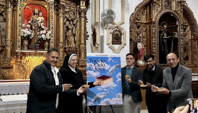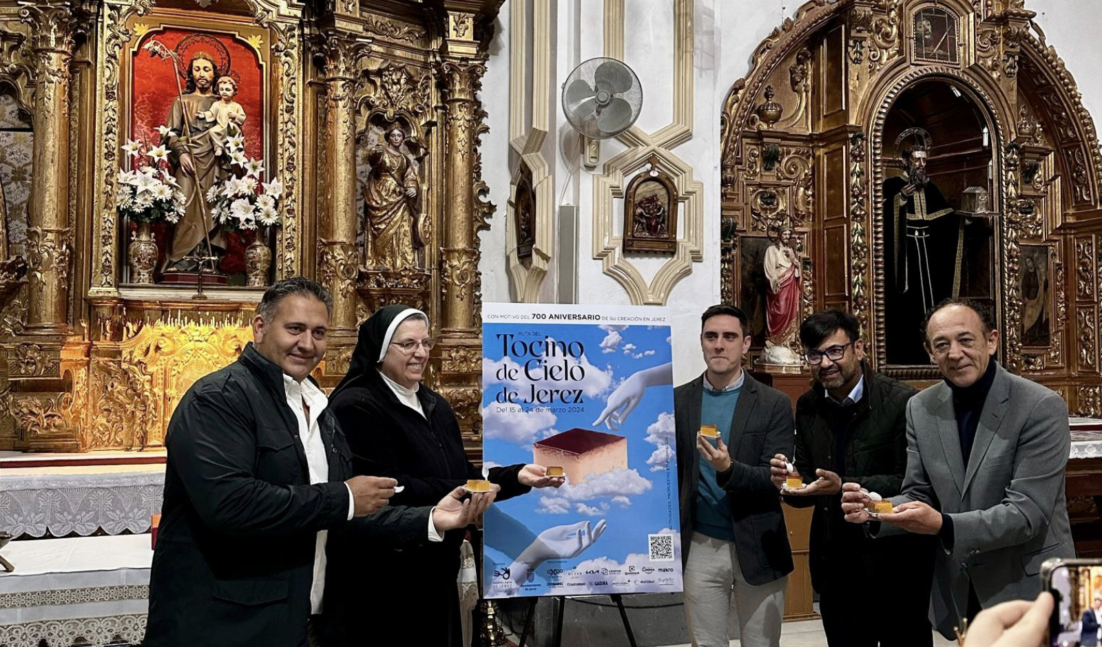 El cartel que anuncia la ruta del ‘Tocino de Cielo de Jerez ‘, que organiza y coordina la Asociación Hostelería de Jerez en colaboración con el Ayuntamiento, se ha presentado en un acto que ha tenido lugar en el monasterio de Santa María de Gracia, popularmente conocido como ‘Convento de Santa Rita’, que es el único convento en el que actualmente se sigue haciendo este dulce elaborado por las hermanas Agustinas.