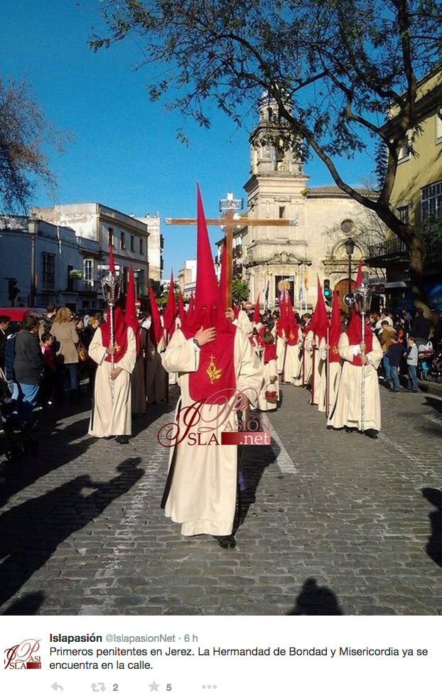Pasos y nazarenos. A tres días del Domingo de Ramos, arranque oficial de la Semana Santa, ya puede decirse que es Semana Santa en Jerez. ¿Suena raro, no? Pues es cierto. Este jueves han desfilado ya la primera procesión por el centro de la ciudad, con las consiguientes molestias de tráfico y cortes provisionales de calles. Si estos días operarios ligados a los planes de empleo temporal la Junta de Andalucía todavía pintan la muralla de palcos de los principales enclaves del casco histórico, ya hay hermandades que se han lanzado a la calle para empezar su particular Semana de Pasión. Y ahí ha estado Onda Jerez para retransmitirlo en directo con su máximo responsable técnico a la cabeza, Miguel Perea, nombrado hace unos meses por el gobierno local coincidiendo con la absorción de la emisora pública, y sus deudas, al Ayuntamiento.