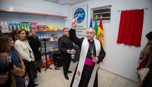 El obispo de Jerez, José Rico Pavés, llevó a cabo la bendición del economato Nuestra Señora de la Estrella, situado en el Hogar la Salle. Esta iniciativa cierra el compromiso de la Hermandad de la Borriquita en relación con la coronación canónica de la imagen hace dos años. Al acto aistieron la presidenta de la Diputación de Cádiz, Almudena Martínez, y delegados del del gobierno municipal.