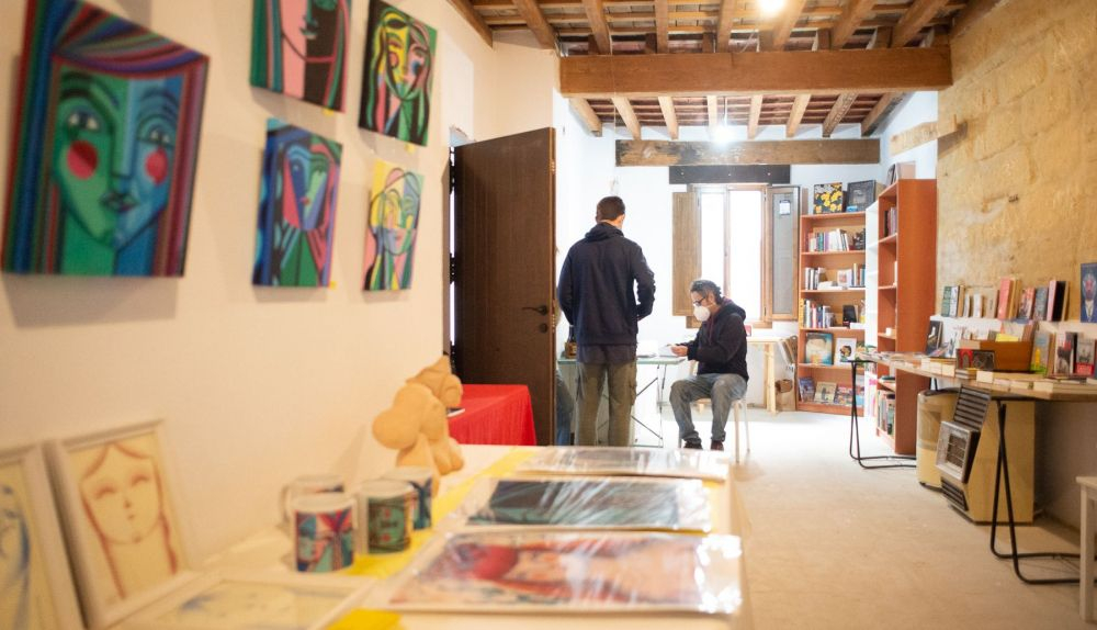 Un mercado con artesanos y artistas locales