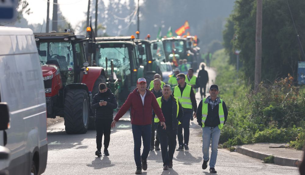 Desde la avenida del Serrallo, decenas de agricultores están llegando a pie a la Rotonda 2 de la avenida Juan Carlos I, conocida popularmente como la del Colesterol.