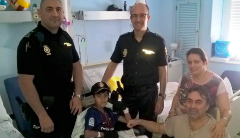 Agentes de la Policía Nacional han visitado al niño Aitor Palomeque que se encuentra ingresado en el Hospital Puerta del Mar en Cádiz tras ser atropellado el pasado 3 de mayo en Jerez por un vehículo cuyo conductor fue detenido por conducir de forma temeraria y bajo los efectos de alcohol y drogas.
