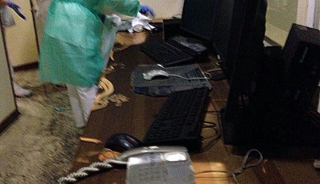 “El problema es que hemos ido con muy buena voluntad. Hemos tenido una mezcla de inconsciencia, voluntad de abrir el servicio y obligación, pero esto se ha limpiado de mala manera, y no hablamos de cualquier cosa, sino de un producto tóxico”, afirma una profesional consultada por lavozdelsur.es. Lo cierto es que fueron los propios técnicos y radiólogos los que tuvieron que ejercer tareas de limpieza de hollín en mobiliario y máquinas, denuncian, “usando productos de limpieza habituales, sin mascarillas o con mascarillas no aptas, cuando aquí lo que debería haber venido es una empresa especializada en limpieza de incendios. Esto es un caos y un despropósito”. El servicio de laboratorio, y en concreto el de Hematología, no escapa a este problema. Situado justo encima de la habitación donde se produjo el incendio, el hollín sigue presente en los conductos de aire.