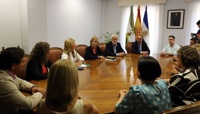 La alcaldesa de Jerez, María José García-Pelayo, acompañada de los miembros del Gobierno local, ha recibido en el Ayuntamiento a la delegada territorial de Desarrollo Educativo y Formación Profesional y de Universidad, Investigación e Innovación en Cádiz, Isabel Paredes.