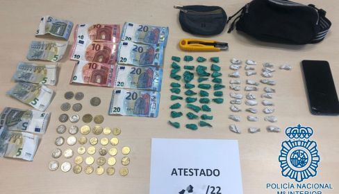 Ante las sospechas sobre las acciones que estaba llevando a cabo los agentes lo interceptaron, en el consiguiente cacheo de seguridad que se le practicó se localizó entre sus ropas 37 papelinas de la sustancia denominada “rebujito”, mezcla de las sobras de la confección química de la heroína y la cocaína, junto a otras 31 papelinas de heroína, además portaba un arma blanca y ciento sesenta euros en moneda fraccionada para facilitar sus ventas.