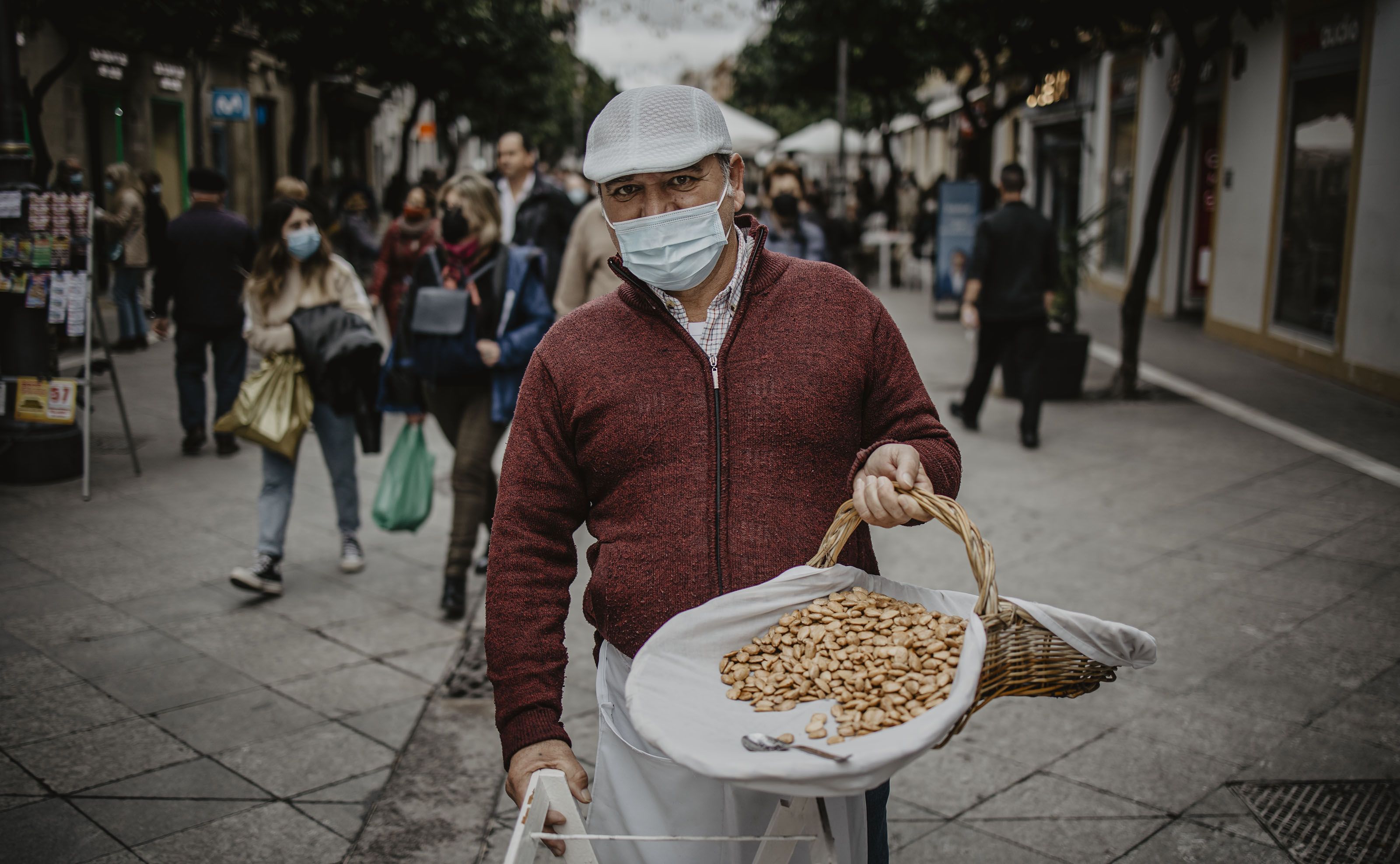 “¡Almendritas buenas… las mejore!”, es lo que cada día se escucha a partir del mediodía en puntos como el Gallo Azul, la calle Algarve y la Plaza Plateros. Jesús Carrasco Guiza lleva 34 años dedicado a la venta callejera cesta en mano, de camarones en Valdelagrana y de almendras fritas en Jerez.