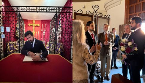 La propia hermandad ha difundido imágenes en las que incluso se ve a Pérez firmar en el libro de la hermandad.