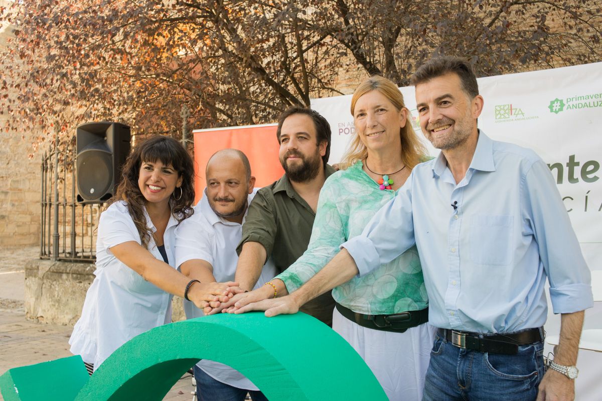 Cardiel, en el centro, junto a Rodríguez, Berdejo, Ana Díaz y Antonio Maíllo, en la presentación de Adelante Jerez en octubre del 2018. FOTO: MANU GARCÍA.