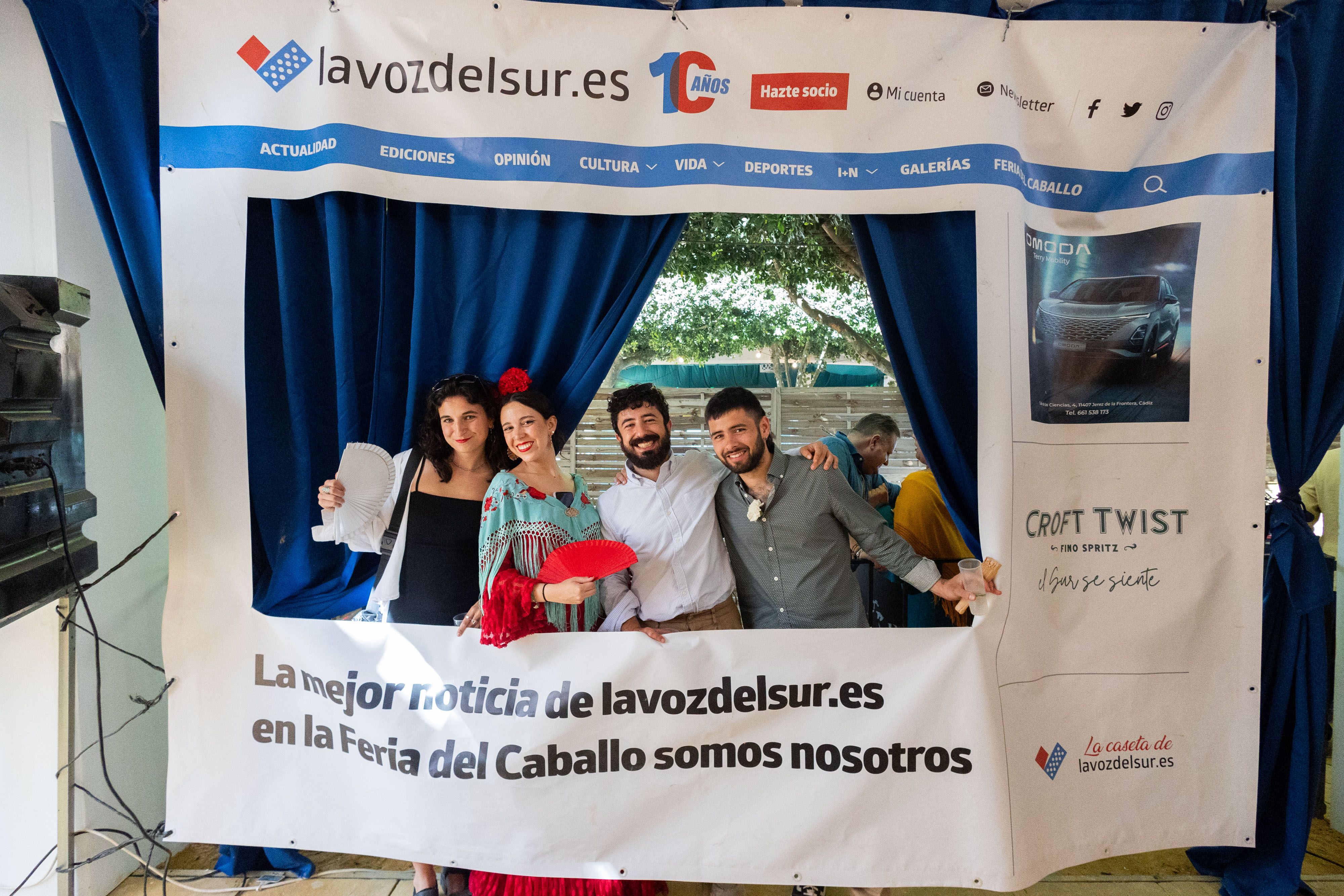 Las casetas de las hermandades son un clásico de la Feria del Caballo y, como apuntan estas dos mujeres, suponen una oportunidad para convivir unos días y dar a conocer el trabajo que realizan.