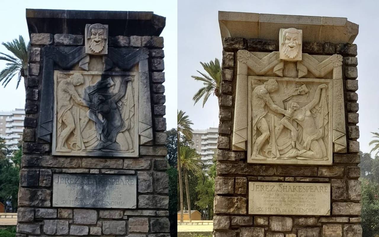 El monumento dedicado al escritor inglés William Shakespeare situado en el parque González Hontoria, en Jerez, ha sido objeto de trabajos de limpieza por parte del Ayuntamiento.