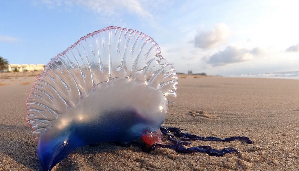 Desde el Ayuntamiento de Cádiz informan de que personal de la Delegación de Playas está avistando y recogiendo de las playas de la ciudad numerosos ejemplares de carabelas portuguesas (también conocida como fragata portuguesa, agua mala, botella azul o falsa medusa), una especie monotípica de hidrozoo sifonóforo de la familia Physaliidae que se está divisando en estos días en la costa occidental andaluza, con motivo de los temporales de las últimas semanas.