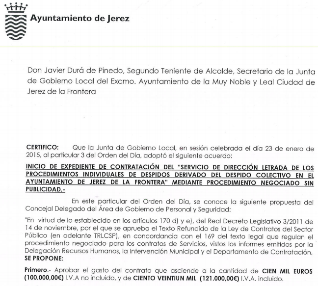 udicial. "Desde la PAE consideramos que esto es una tomadura de pelo y una inmensa desconsideración hacia trabajadores y trabajadoras que llevan dos años y medio de sufrimiento", han mantenido en declaraciones a este medio. Como adelantó la pasada semana La Voz del Sur, el gobierno local está dispuesto a afrontar unos gastos superiores a los 120.000 euros de dinero público para que la consultora Deloitte intente terminar lo que empezó. El gobierno local sigue sin aclarar, por cierto, cómo se ha producido la contratación de esta empresa -conocida, por ejemplo, por las auditorías de Caja Madrid y Bankia-, pero en la web municipal ya aparece que el procedimiento de adjudicación se ha tramitado por procedimiento negociado sin publicidad (ver captura de pantalla adjunta). Al parecer, la Intervención Municipal ha arrojado serios reparos a dicha adjudicación.
