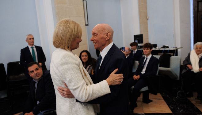 El pleno municipal del Ayuntamiento de Jerez ha aprobado por unanimidad conceder a Antonio Gómez Moreno el Título de Hijo Adoptivo de Jerez, una concesión que se oficiará en un pleno extraordinario y solemne que se celebrará el próximo 9 de marzo. Según la propuesta aprobada por el Pleno, en Antonio Gómez concurren méritos más que suficientes para ser distinguido con dicha condecoración. La alcaldesa, María José García-Pelayo, ha saludado a Antonio Gómez, que ha asistido muy emocionado al pleno, acompañado de su familia.