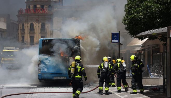 Un autobús urbano de Jerez ha salido ardiendo en plena plaza Esteve este mediodía. En concreto, como puede comprobarse en varios vídeos de lavozdelsur.es, se trata de un problema en el motor, que está en llamas.