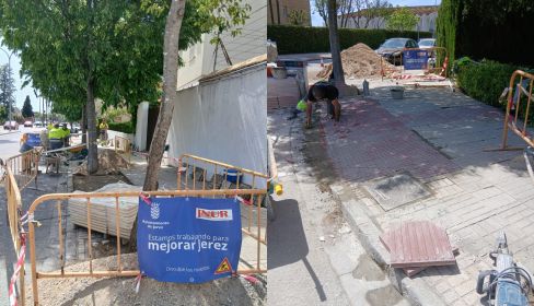 Las obras de mejora de aceras y accesibilidad que el Ayuntamiento de Jerez está llevando a cabo en distintos puntos de la ciudad han llegado a la avenida Duque de Abrantes, por el entorno de Piscina Cubierta José Laguillo.