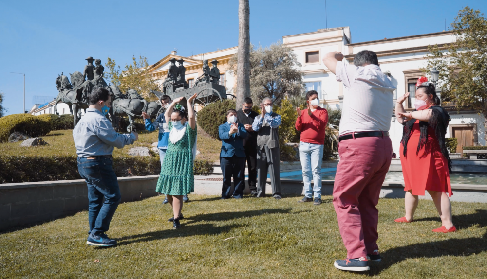 Los usuarios de Down Jerez Aspanido, que atiende a jóvenes con Síndrome de Down y discapacidad intelectual, se arrancan a bailar unas sevillanas inclusivas para celebrar la que iba la semana de la Feria del Caballo. Con ellas celebran también el 30 aniversario de la asociación, con la voz de la artista chiclanera Nazaret Natera (tercera finalista y pase de oro de Got Talent 2019). "Hoy yo te quiero cantar esta canción, por una vida como la tuya donde reine la ilusión", dice durante la canción.