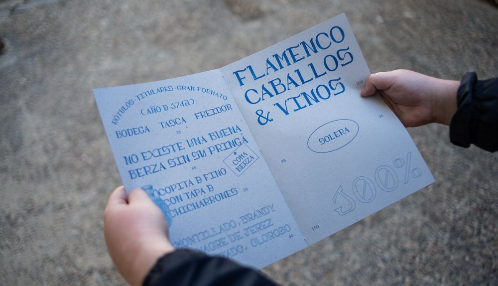 "Al final —abunda el diseñador—, esta tipo es una mezcla de todo el patrimonio gráfico que hemos podido tener en siglos de historia: desde el origen primitivo de la tipografía, que está en las lápidas funerarias que estaban en Mesas de Asta, hasta la mezcla de todo el universo visual que hemos tenido con la industria del vino. Y también meter los rótulos de los comercios clásicos, los de Olavide cuadrados del siglo XVIII, y los propios luminosos de las bodegas… Mezclar toda es gráfica para conseguir un elemento nuevo que ha sido esta tipografía, con un trocito de toda la historia de Jerez".