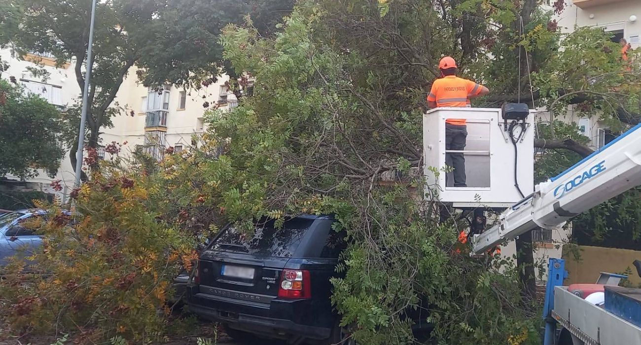 Las aceras no se diferenciaban de la carretera y el tráfico se empezó a complicar en la zona. Afortunadamente, salvo la caída de ramas, no hubo que lamentar ningún problema de gravedad.