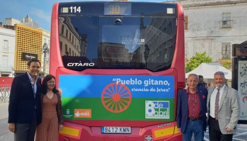 La celebración de este día ya comenzó el pasado viernes cuando diferentes cargos del Ayuntamiento de Jerez participaron en un acto en el que presentaron un autobús urbano engalanado con la imagen de la campaña de este año que lleva por lema 'Pueblo gitano, esencia de Jerez'.