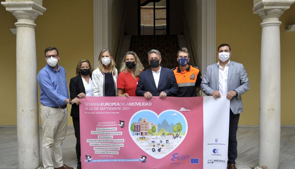 El delegado de Movilidad, Rubén Pérez Carvajal, ha presentado el programa de esta semana, acompañado por Mario Alonso, director de Alcampo Jerez, e Isabel Mora, responsable de Comunicación de El Corte Inglés.