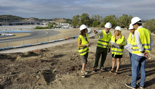 La alcaldesa de Jerez, Mamen Sánchez, acompañada del la teniente de alcaldesa Laura Álvarez y del director del circuito Cayetano Gómez, ha visitado las obras de ampliación de la seguridad que el Ayuntamiento de Jerez está realizando en las curvas del Circuito de Jerez-Ángel Nieto con presupuesto de 4.400.000 euros.