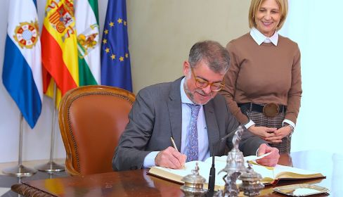 La alcaldesa de Jerez, María José García-Pelayo, ha ofrecido este mediodía una recepción oficial al pregonero de la Semana Santa de Jerez 2026, Juan Mera Gracia, en un acto institucional celebrado en el Salón Noble del Ayuntamiento con motivo de su designación como encargado de anunciar la Semana Mayor.