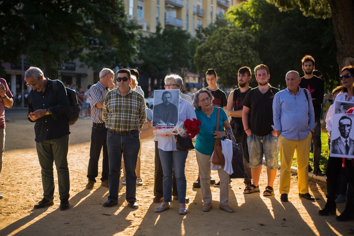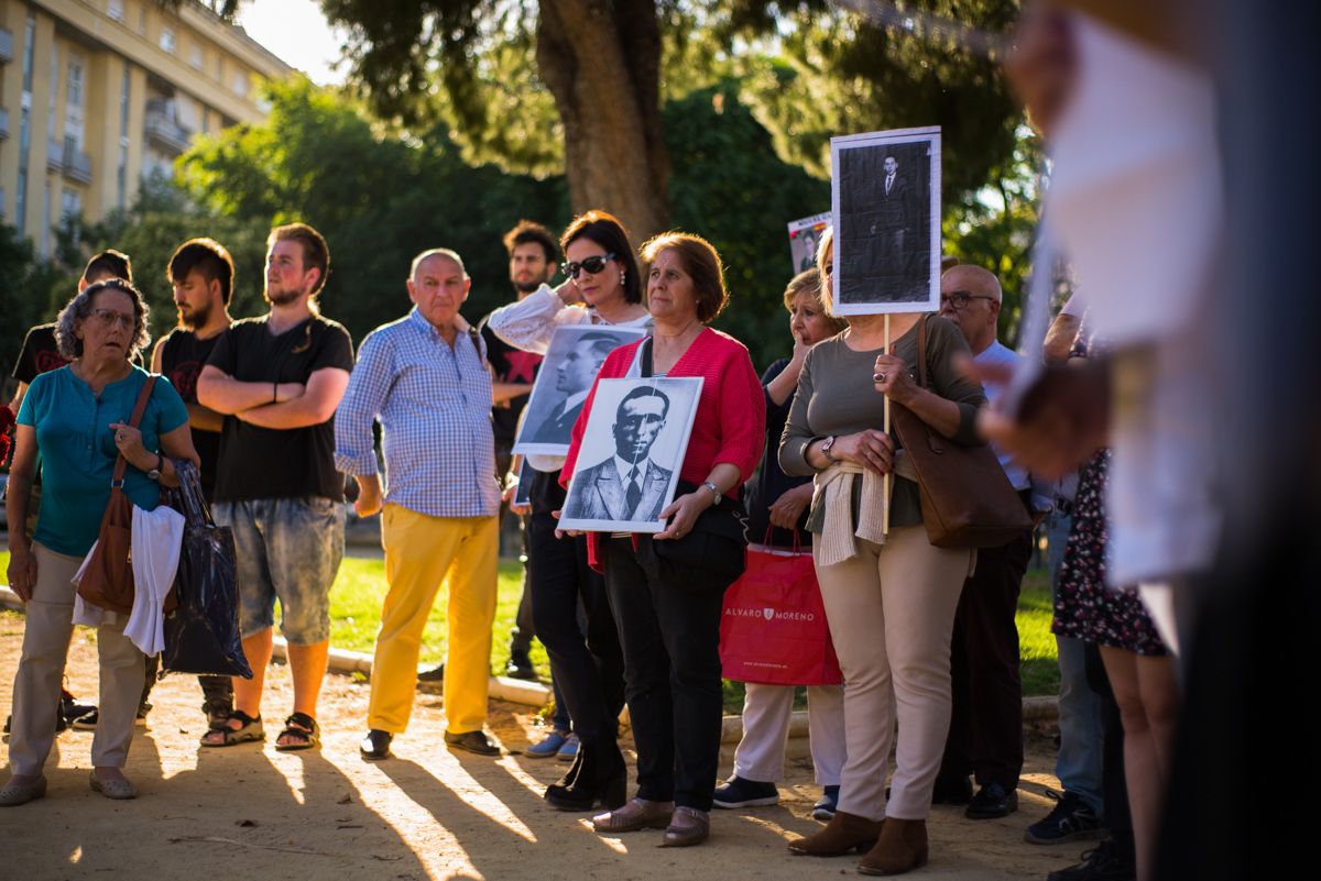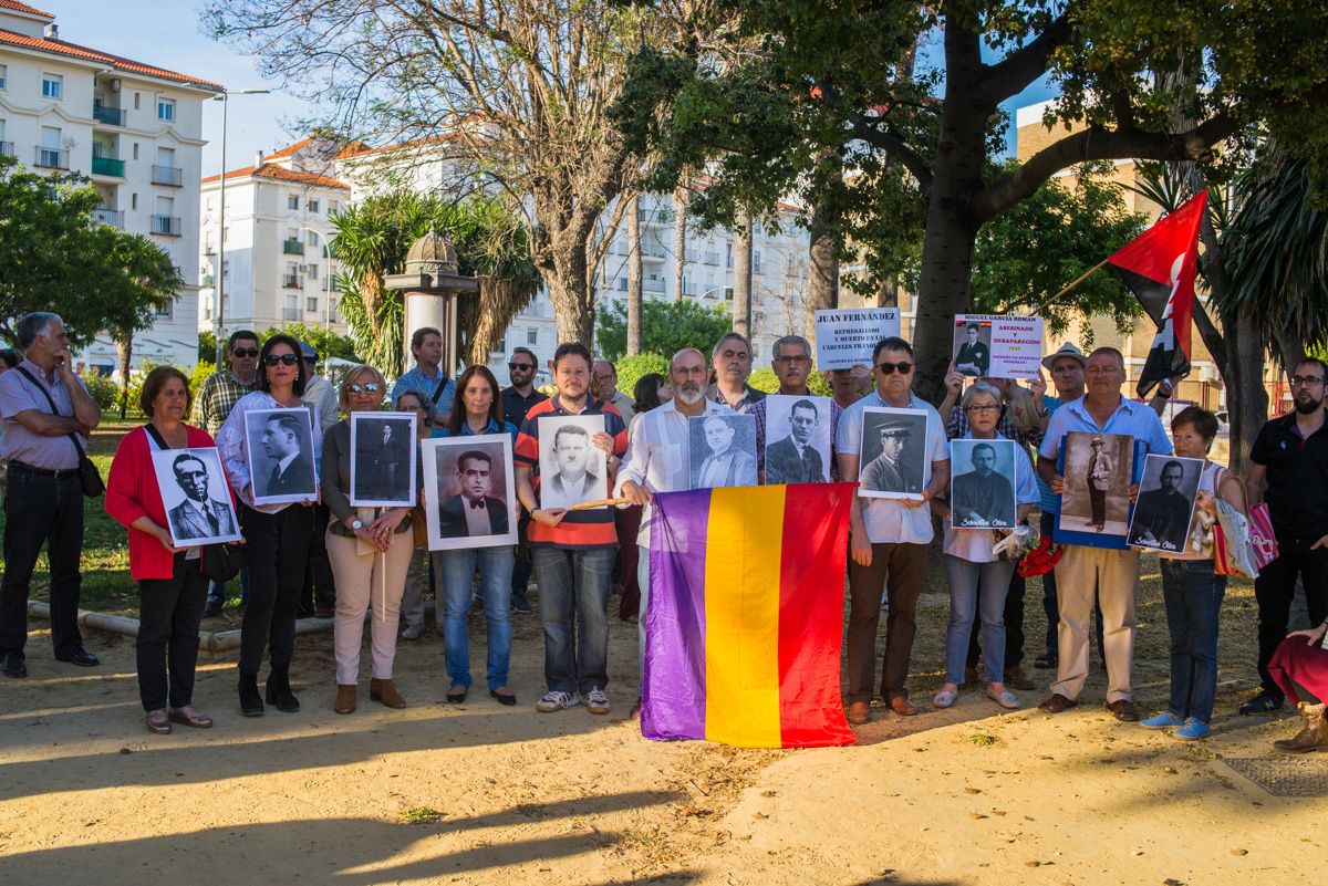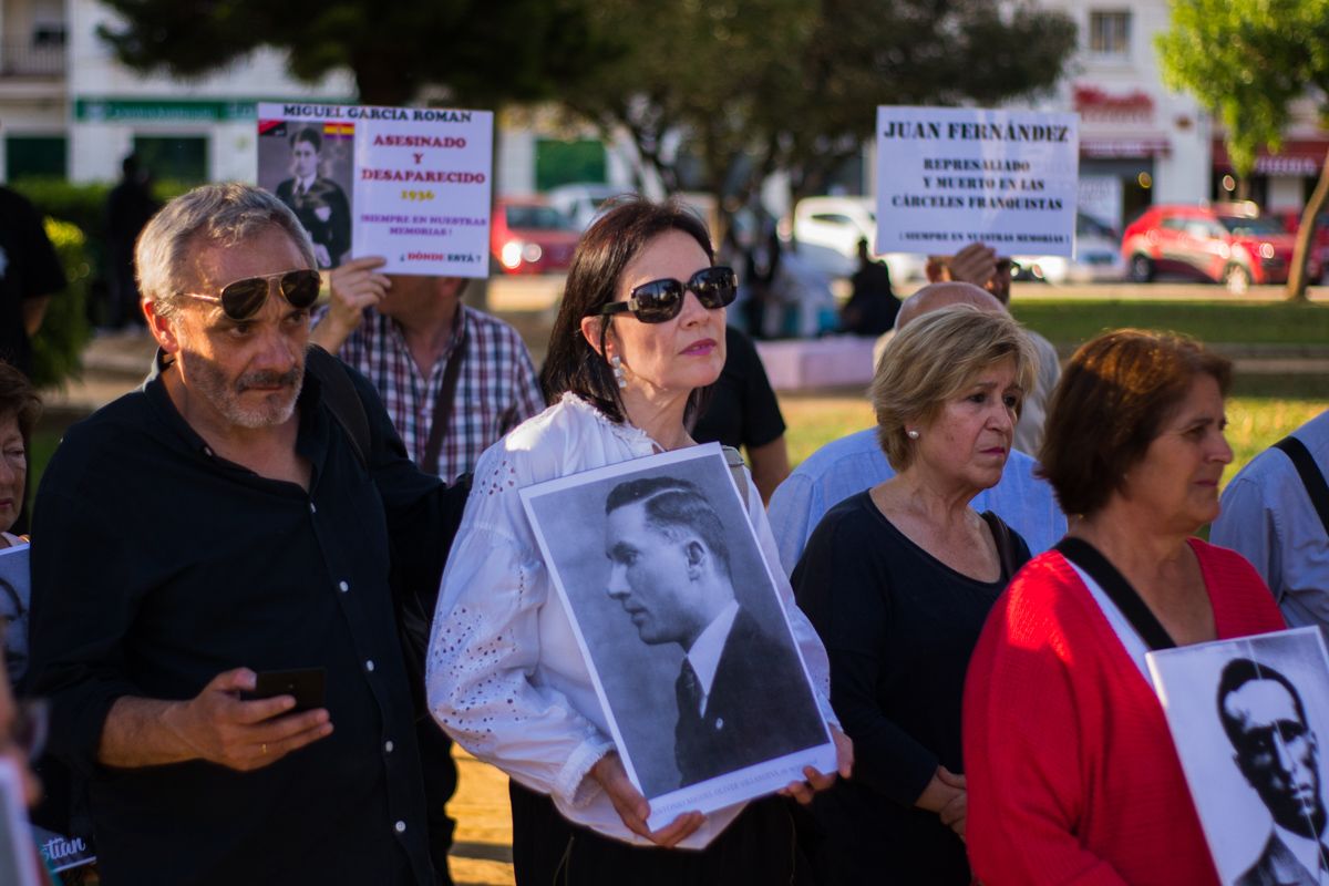 Con fotografías de los rostros de los ajusticiados y carteles anunciando sus nombres —Juan Fernández, Sebastián Oliva, Antonio Oliver, Miguel García Román o Antonio Chacón Ferral...— y exigiendo justicia y reparación, medio centenar de personas se ha concentrado para exigir que las administraciones públicas "dignifiquen la memoria del ejemplo de nuestros mayores y que esta memoria no sea ensuciada por los herederos de la represión a quienes se homenajea con calles, plazas, avenidas, monumentos y placas municipales. No lo pedimos, lo exigimos", ha enfatizado Amaro de la Calle, representante de la asociación de familiares y amigos por la recuperación de la Memoria Democrática de Jerez y la comarca.