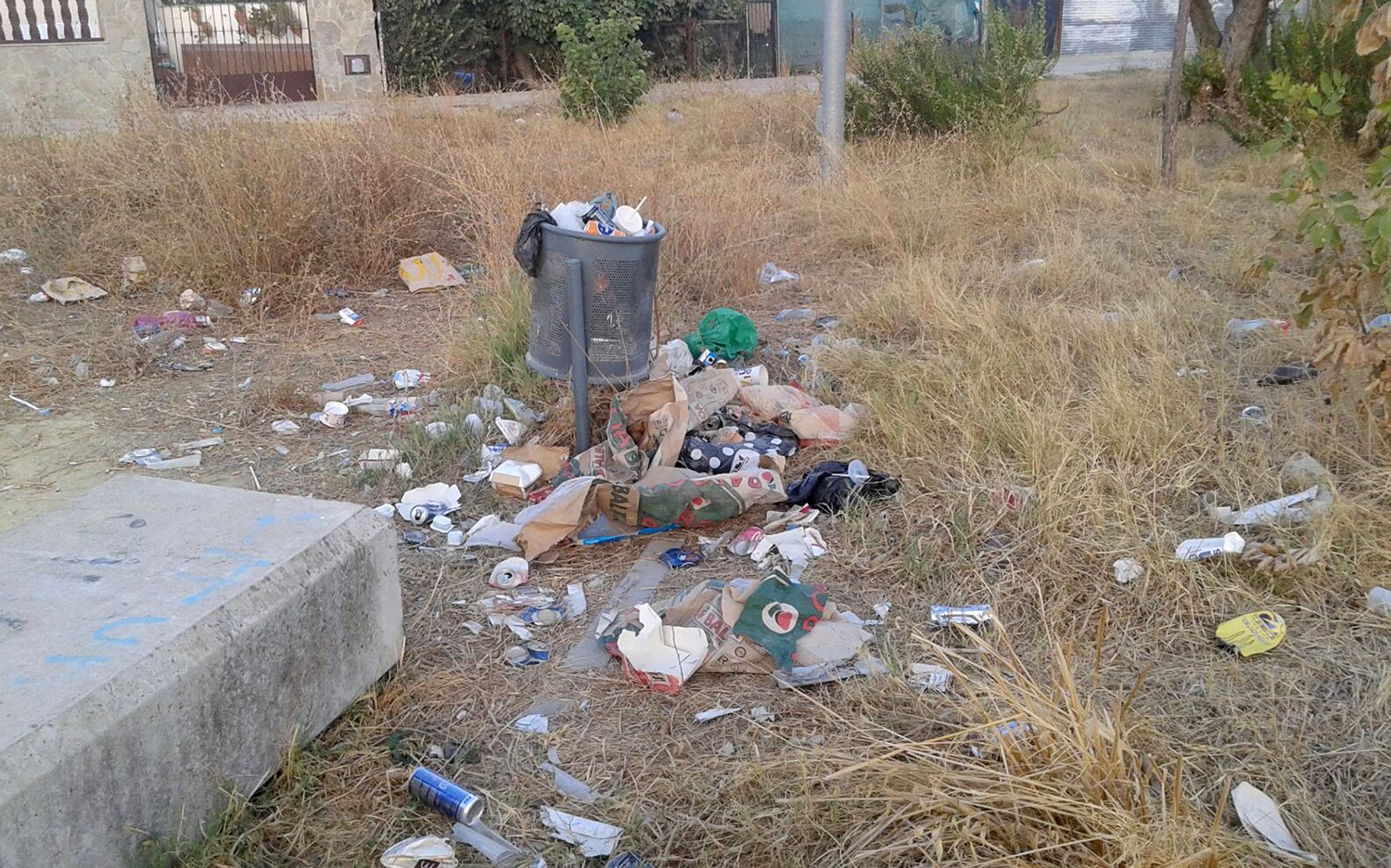 Además, la zona es lugar de paso de los alumnos del CEIP San José Obrero, por lo que muchos padres también temen que sus hijos puedan contraer alguna enfermedad si tienen la mala suerte de que les muerda una rata o entran en contacto con alguna lata oxidada, por ejemplo. “Está en muy malas condiciones, hay escombros, ratas, árboles rotos, mucho pasto seco”, se queja una vecina, que asegura que hay “mantenimiento cero”. “Cuando compramos las viviendas –añade– aquí iba un parque y no se ha llegado a hacer”, insiste.