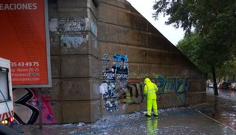 El Ayuntamiento de Jerez, a través de la empresa concesionaria Jerez UTE, está llevando a cabo estos días un refuerzo de los trabajos de limpieza de pintadas, eliminación de grafitis en contenedores y retirada de carteles colocados sin autorización en espacios públicos. La actuación incluye zonas de gran tránsito ciudadano y enclaves visibles, como los pilares que sostienen infraestructuras ferroviarias en el entorno de Ifeca, así como elementos del mobiliario urbano distribuidos en distintos puntos del municipio.