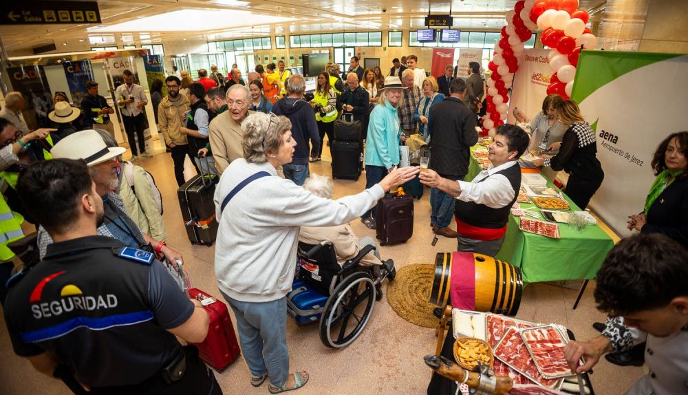 Entre mayo y octubre-noviembre, hay tres vuelos semanales entre Jerez y Reino Unido, de una aerolínea que palpa "el interés" del turista británico, al que agasajan, como en este primer vuelo, para que "cuando vuelvan a casa hablen maravillas del destino y este boca-oreja nos beneficie".