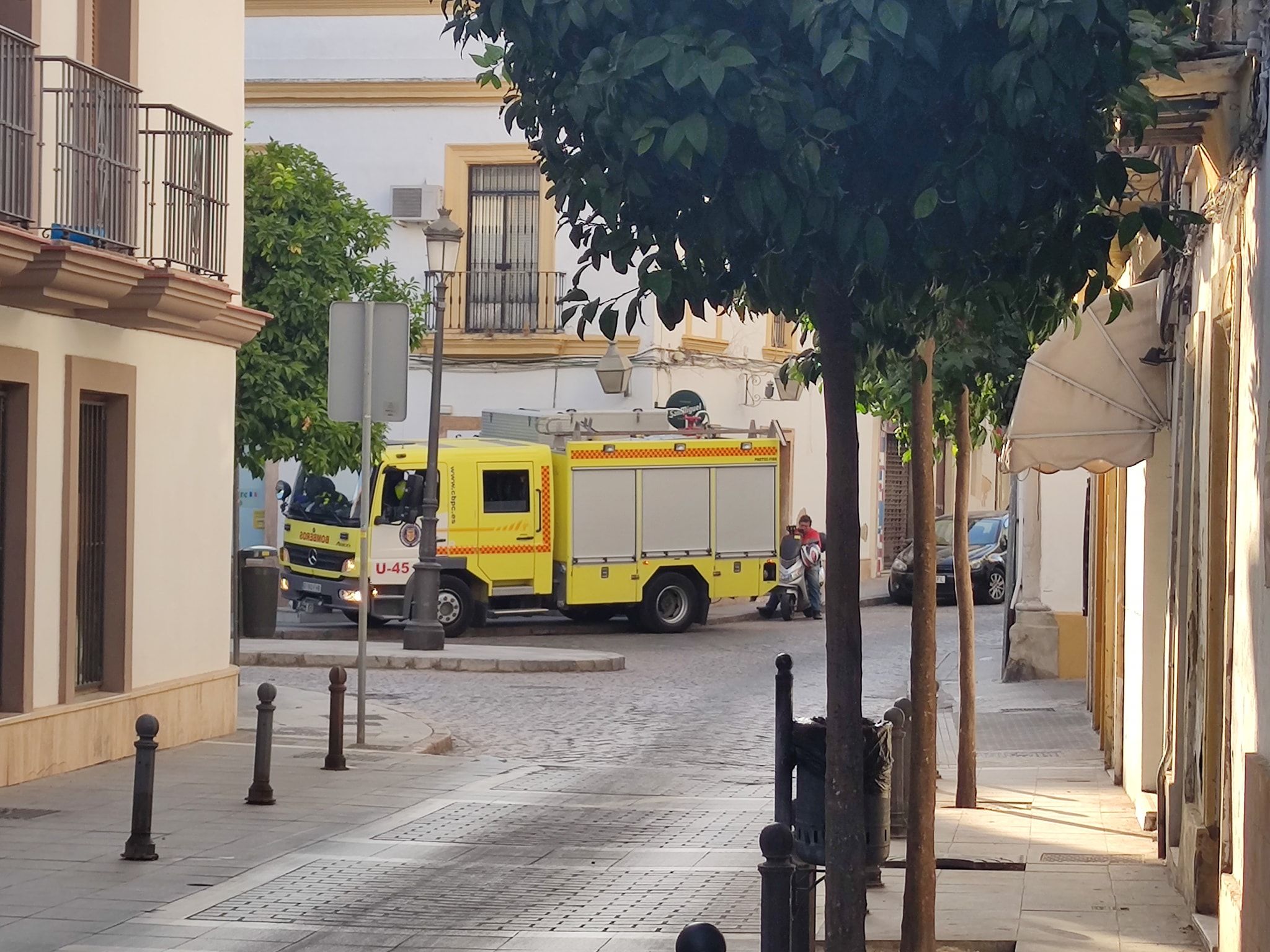 Los bomberos de Jerez han acudido este jueves a una vivienda de la céntrica calle del Pollo para rescatar a una persona que se encontraba en su interior en el suelo, y que no podía levantarse.