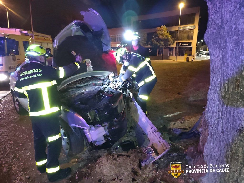 Efectivos del Consorcio de Bomberos de la Provincia de Cádiz, adscritos al Parque de Jerez, han tenido que intervenir ante la aparatosidad del siniestro vial.