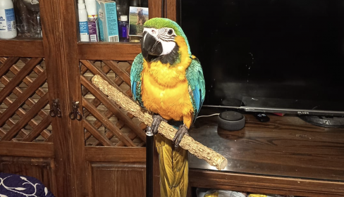 Este animal lleva tres meses viviendo con Alfonso. Aunque es su primera experiencia con un guacamayo, el dueño ya había tenido antes agapornis. Este ejemplar, además, tiene un fuerte componente sentimental: fue un regalo de cumpleaños de su hermana, que reside en el norte y contaba con una pareja reproductiva de guacamayos. Ella se quedó con uno y él con el otro. “