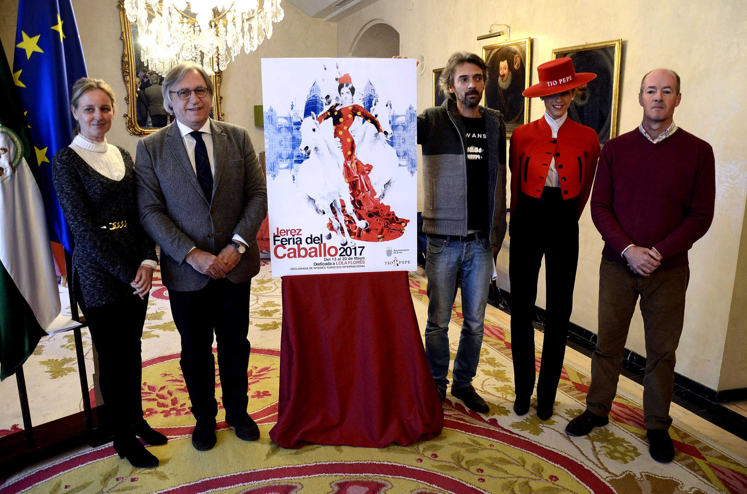 La Feria del Caballo 2017, que este año rinde homenaje a Lola Flores, ya tiene cartel. Su autor, Sergio Martínez Cabeza, miembro del gabinete de Diseño Gráfico del Ayuntamiento, señala que la obra "es Jerez, por eso están los iconos arquitectónicos, por eso está Lola Flores y hay tres caballos, la idea es que sea una tríada jerezana con tres elementos, la arquitectura, los caballos y la cultura flamenca que es Lola Flores. Es impactante el rojo, de España, el azul, de Jerez, el poderío de Lola, los caballos, la diversión, la algarabía y el arte".