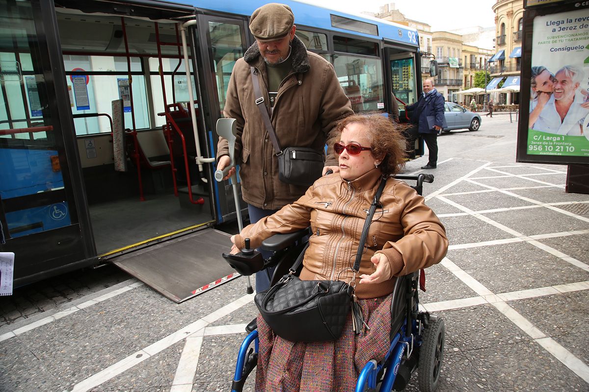Un gesto tan simple como montarse en autobús se convierte en una odisea para Inmaculada. “Cada vez que tengo que cogerlo le temo, porque no sé lo que me voy a encontrar”, dice. Esta jerezana nació con espina bífida (una malformación congénita en la espalda) y desde muy joven ha utilizado sillas de ruedas para desplazarse. De pequeña cuenta que era su madre quien la llevaba y ahora siempre va acompañada de su inseparable marido, que también tiene problemas de movilidad, ya que necesita una muleta para poder andar. Pero gracias a él puede usar el transporte público. "Menos mal que lo tengo", dice.