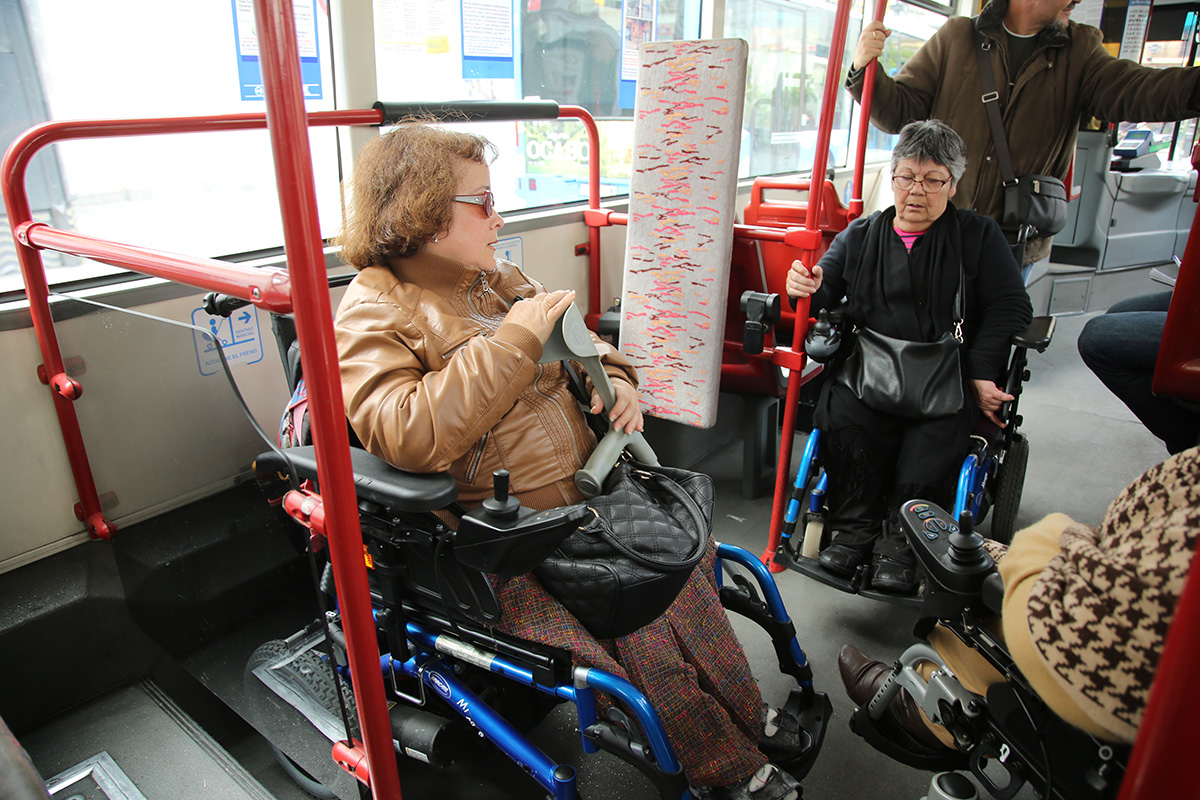 Es un día entre semana, primera hora de la tarde. Inmaculada quiere ir a Esteve con su marido. Pero no se lo ponen fácil. El primero en llegar es un autobús de la línea 2. Pasa de largo. “Se ha ido y no ha dicho nada”, comenta resignada Inmaculada. Con el segundo tampoco hay suerte. Intenta parar pero dos coches mal aparcados impiden al chófer acercarse más a la acera para poder desplegar la rampa instalada en la puerta trasera. Tras un breve intercambio de palabras sigue su marcha. Tampoco logra subirse al tercero que pasa, ni al cuarto. Es a la quinta cuando Inmaculada puede montarse por fin en un autobús. Pero no sin dificultades. Tiene que ser su marido quien la ayude porque, una vez desplegada la rampa, se encuentra con un escalón justo en la puerta del autobús que hace que le sea imposible acceder por ella misma. Al recogerla, la rampa se atasca y tiene que ser el conductor, con el pie, quien la recoja.