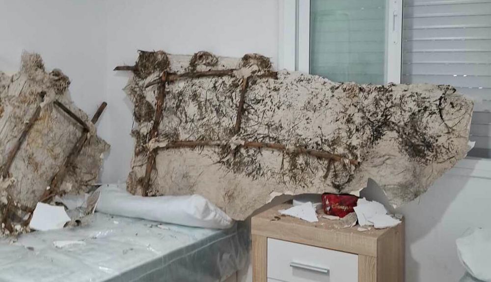 Un fuerte golpe alrededor de las 14:30 horas de la tarde de este jueves revelaba lo que se estaba viendo venir en una vivienda de la barriada de La Asunción, en un bajo: medio techo se ha desprendido y lo ha hecho sobre las camas de dos niños, dos hermanos, nietos de la propietaria de la casa.