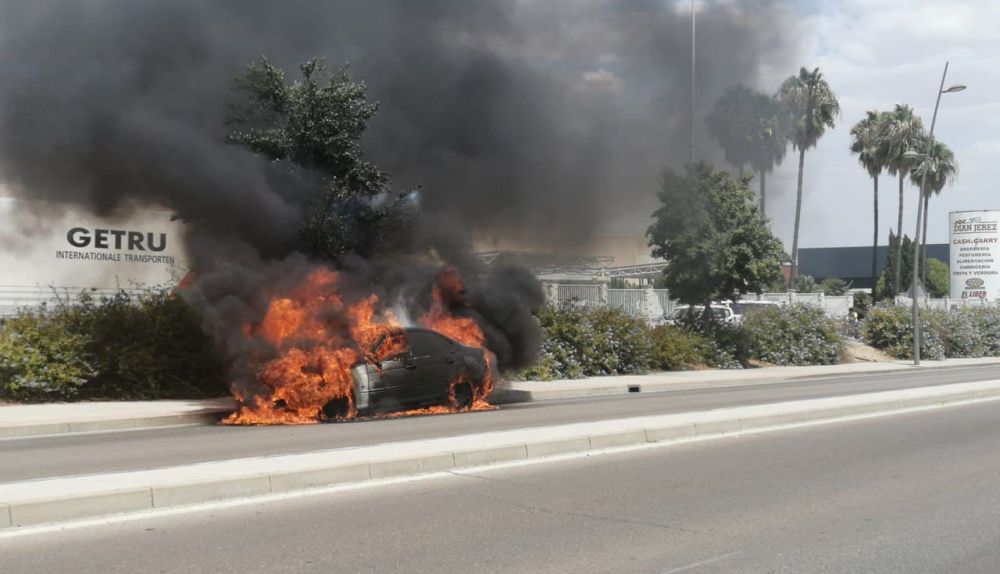 Los bomberos del Consorcio Provincial han acudido esta tarde a un incendio de un vehículo en plena avenida Adolfo Suárez en Jerez, junto al Parque Empresarial.