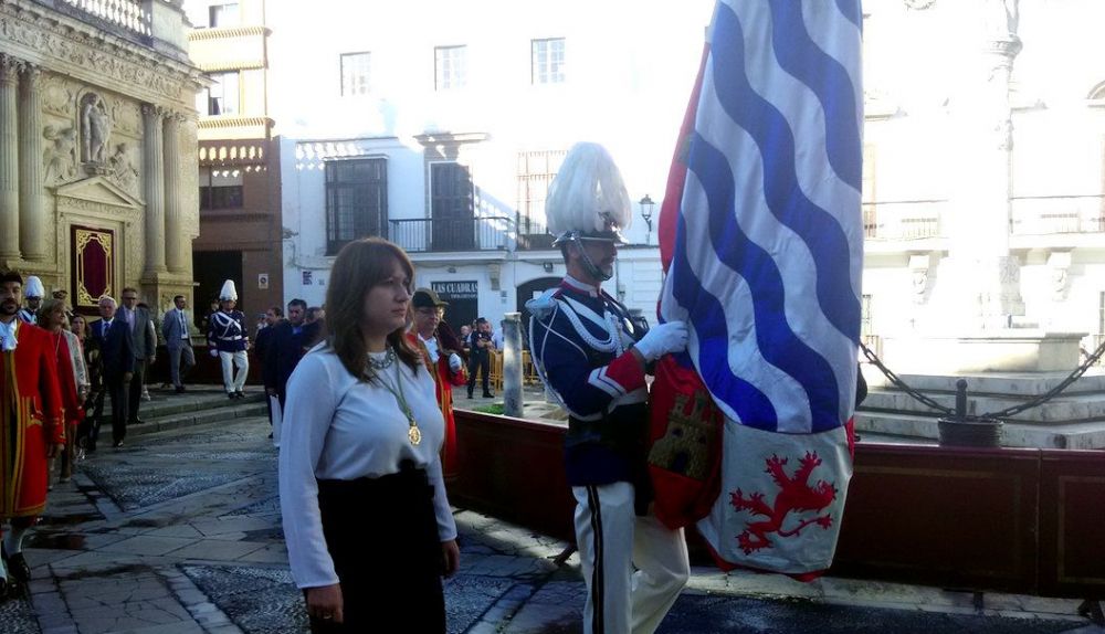 Era de esperar que el tradicional acto del traslado del Pendón de la ciudad, desde la logia del Cabildo Viejo a la parroquia de San Dionisio, estuviera salpicado por las protestas de los extrabajadores municipales afectados por el ERE y por el sindicato SIP. Efectivamente, ambos grupos no faltaron a su cita.
