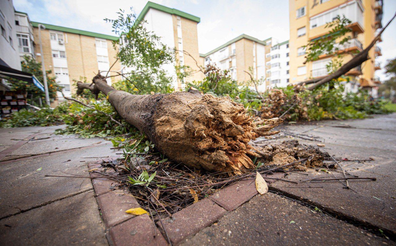 Los vecinos de la barriada San José Obrero se han levantado con una instantánea muy diferente a la de otros días. Las numerosas ramas por el suelo eran el fiel testimonio de una noche bastante movida.