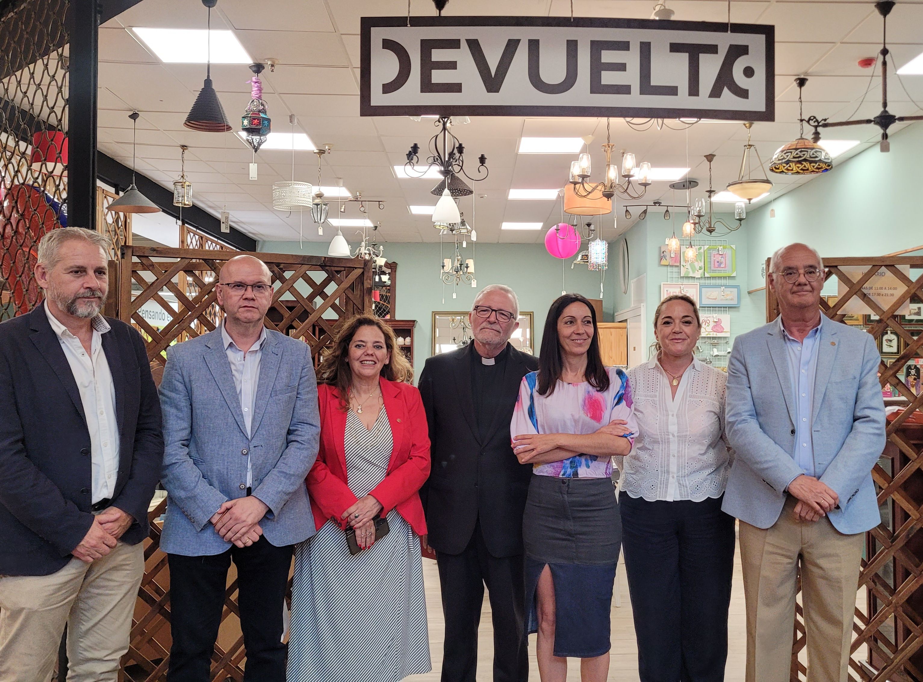 Cáritas Diocesana de Asidonia-Jerez ha inaugurado y bendecido esta mañana un local de 150 metros cuadrados en el Centro Comercial Carrefour Jerez Sur, en el que, a través de su empresa de inserción Casa Común, pondrá a la venta artículos de ‘Devuelta’, su línea de restauración de muebles y objetos decorativos. En este acto han asistido Diego Vidal Ros, delegado episcopal de Cáritas Diocesana, Eugenio Sánchez Salas, director de la entidad y Sandra Fernández Garrido, gerente del centro comercial.